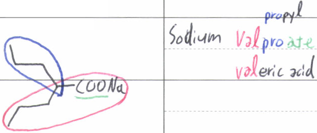 Sodium Valproate: Sodium Val(eric acid)pro(pyl)ate(=-ic acid)