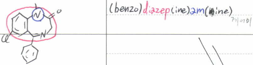 diazepam에서도 어김없이 az라는 조각과 am이라는 질소 포함 구조에 쓰이는 단어가 중복으로 사용되었다.