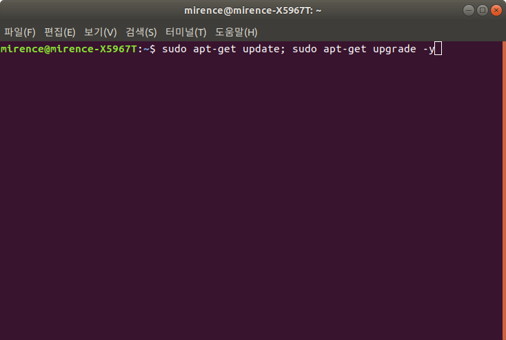 sudo apt-get update; sudo apt-get upgrade -y를 실행해줍니다.