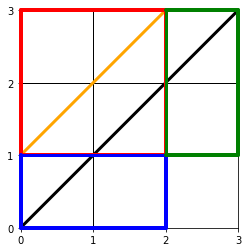 그래서 우리는 이 모양들 중 가장 계산하기가 편한 1번 모양을 쓰는겁니다. 그리고 이 모양이 위에서 '반사원리'라고 하는 원리가 적용된 모양과 동일한 모양이죠.(제일 처음 이미지의 파란박스를, 1번 모양과 비교해보면 y=x+1에 대해서 선대칭(반사)인 것을 알 수 있습니다.)