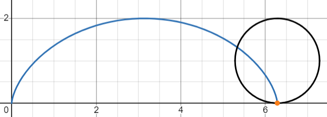 그러나 여기서 본식은 매개변수 표현인데 바로 $ dx $를 써서 계산이 불가능 하기때문에, 과거 포스팅에서 정리했던 내용들을 다시 상기해보면, $ dx = r(1-\cos t)dt $입니다.