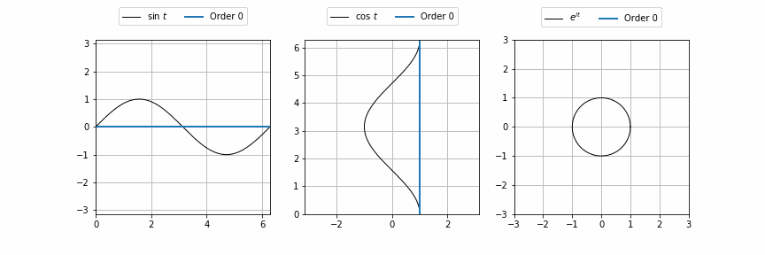 | Order | \(\sin t\) | \(\cos t\) | \(e^{it}\) |