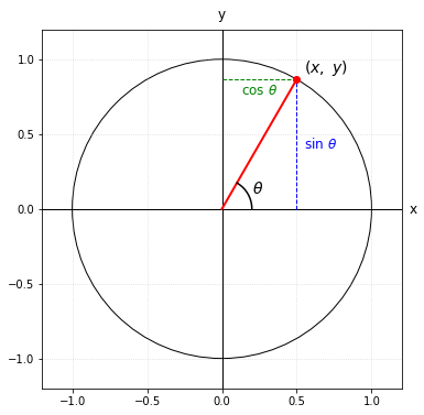 로 표기가 됐었죠?(그래서 자연스럽게 삼각함수 항등식 $ \cos^2 \theta + \sin^2 \theta = 1 $이 유도되는거구요)