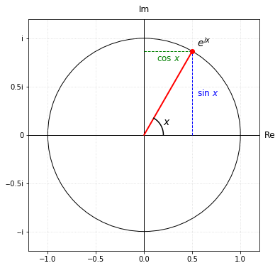 이 원 위의 한 점은, 위에서 알아봤다시피 $ e^{ix} $로 나타낼 수 있습니다.