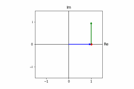 이전까지는 수직선(number line) 상에서 양의 방향과 음의 방향의 선형적 움직임이었다면 이제, 허수축으로도 움직입니다.