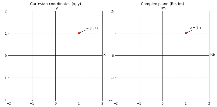 다만, Cartesian 평면에서는 x값과 y값이 따로 제시가 되었지만 복소평면에서는 실수+허수i로 표현을 하기 때문에