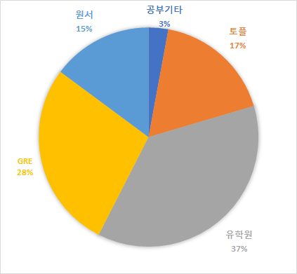 H학원에서 GRE 3개월 수강하였고, 수강료에 책값과 기타 부교재 비용등을 총합하여 301만원을 사용하였습니다.
